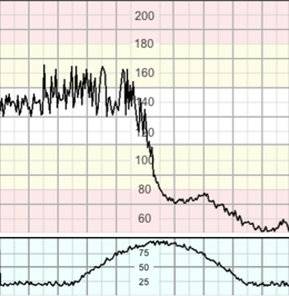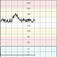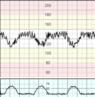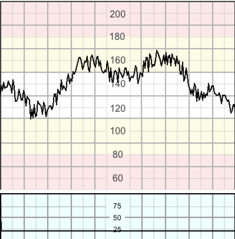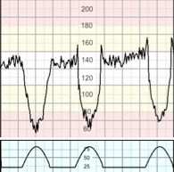 Rise in the baseline (with normal variability and stable baseline) preceded by decelerations and loss of accelerations | ||