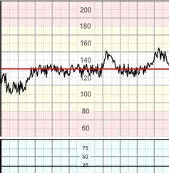 The mean fetal heart rate rounded to increments of five beats per minute during a ten-minute segment, excluding accelerations, deceleration and periods of marked FHR variability. The baseline must be for a minimum of 2 minutes in a ten-minute segment. Otherwise, the baseline for that segment is described as indeterminate.Macones et al. 2008