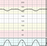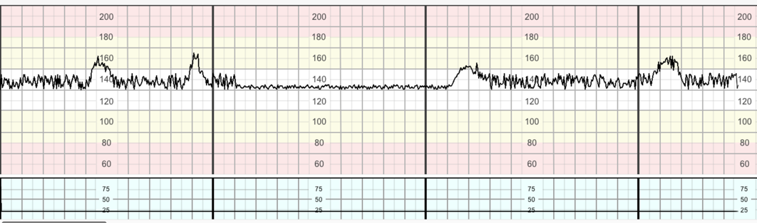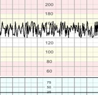 Unable to Ascertain fetal wellbeing | (Poor signal quality, uncertain baseline, possible recording of the maternal heart rate) |