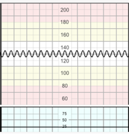 A regular, smooth, undulating signal, resembling a sine wave, with an amplitude of 5−15 bpm, and a frequency of 3−5 cycles per minute. This pattern lasts more than 30 minutes and coincides with absent accelerations.