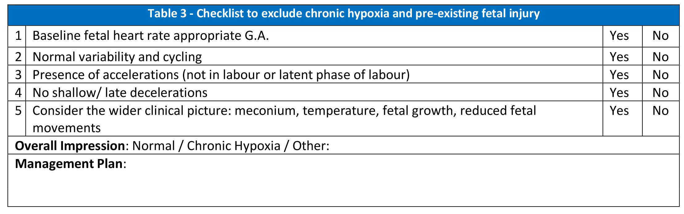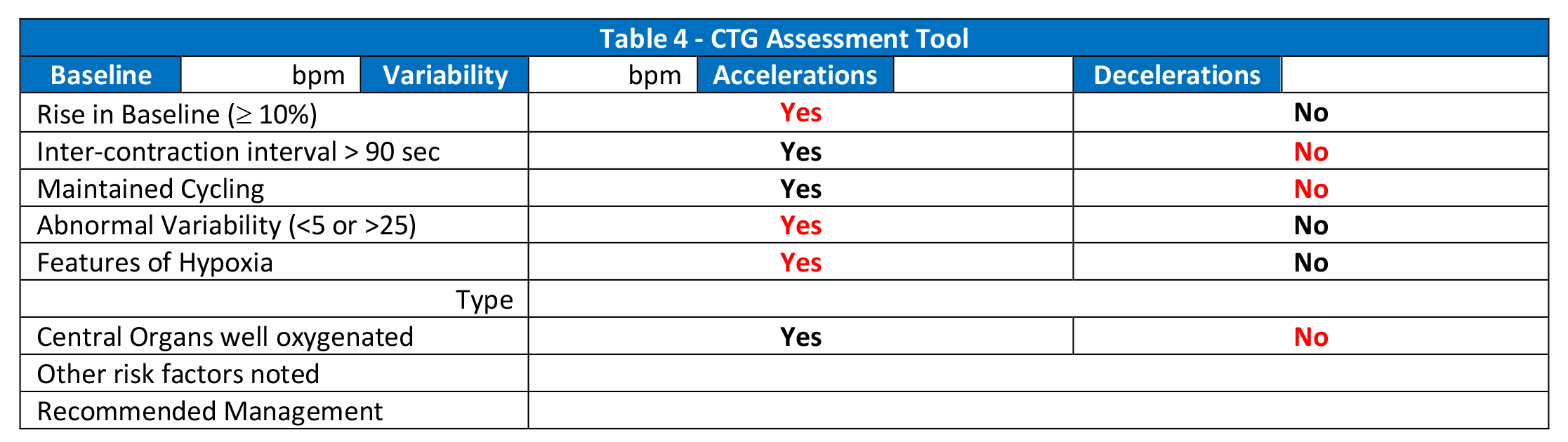 When CTG changes develop, it is important to address underlying causes before hypoxia occurs. The midwife caring for the woman should escalate to a senior midwife/obstetric team for review without delay.